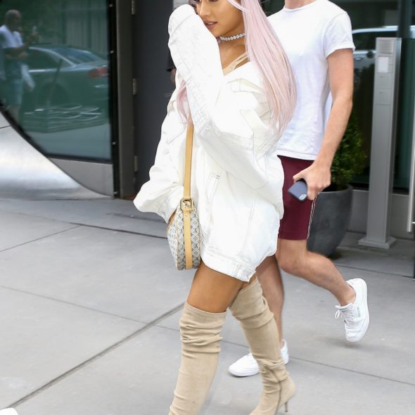 Look do Dia: o visu nude deu match com o cabelo lavanda da Ariana Grande