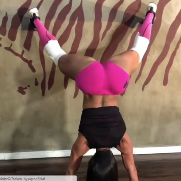 • Gracyanne Barbosa planta bananeira em vídeo rebolando o bumbum e diz: “Sextou e a gente tá como?”