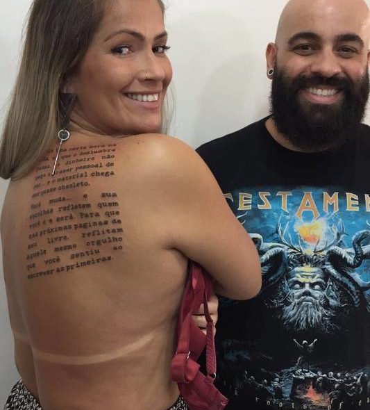 Fani faz tatuagem gigante nas costas com texto escrito por ela: ‘O deslumbre passa’