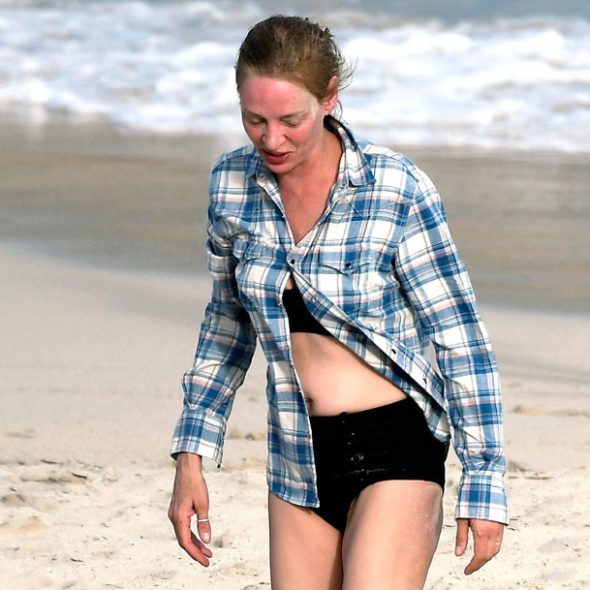 Uma Thurman pega no sono na praia e acorda toda queimada