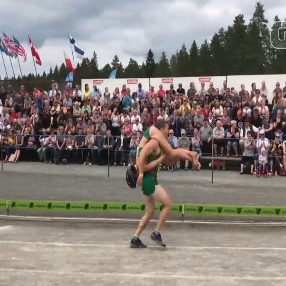 Casal da Lituânia vence campeonato mundial de carregamento de esposas