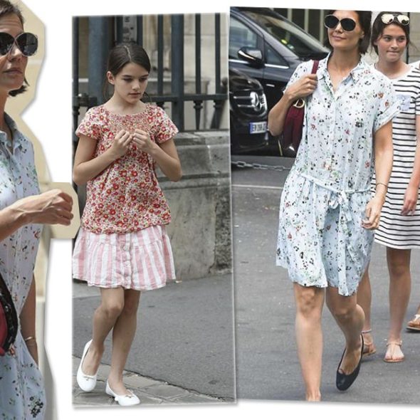 Katie Holmes e Suri Cruise passeiam por Paris com looks despojados e grifados