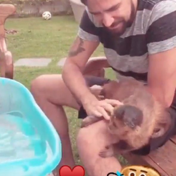 Latino dá banho em novo macaco e posta vídeo: “O amor está no ar”