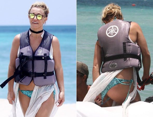 Britney Spears dá ajeitadinha em biquíni e quase mostra demais