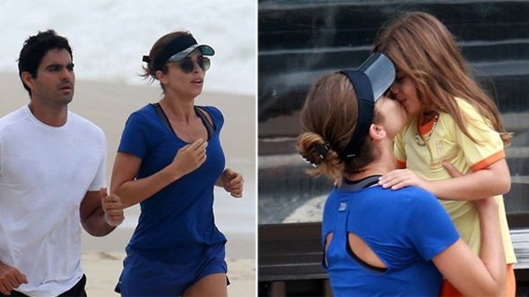 Grazi Massafera dá beijinho em Sofia após corrida na praia com namorado